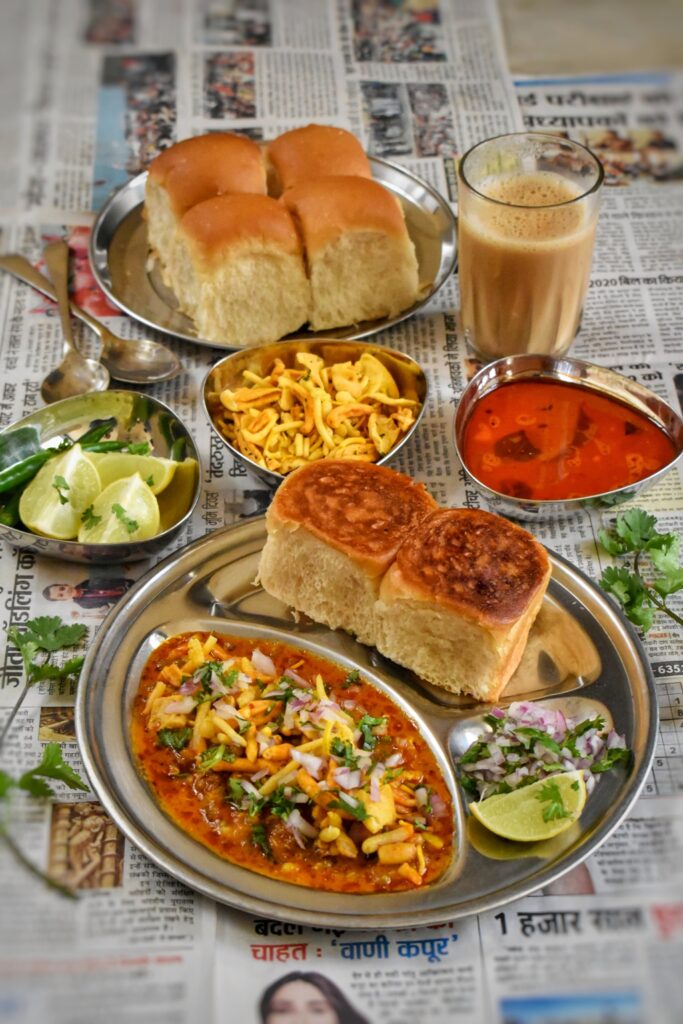 Misal pav, a popular dish from Maharashtra consists of curry made with moth beans and is served with Pav bread. The addition of farsan or sev, onions, lemon and coriander make it more delicious. It can be eaten as snack or a full meal.